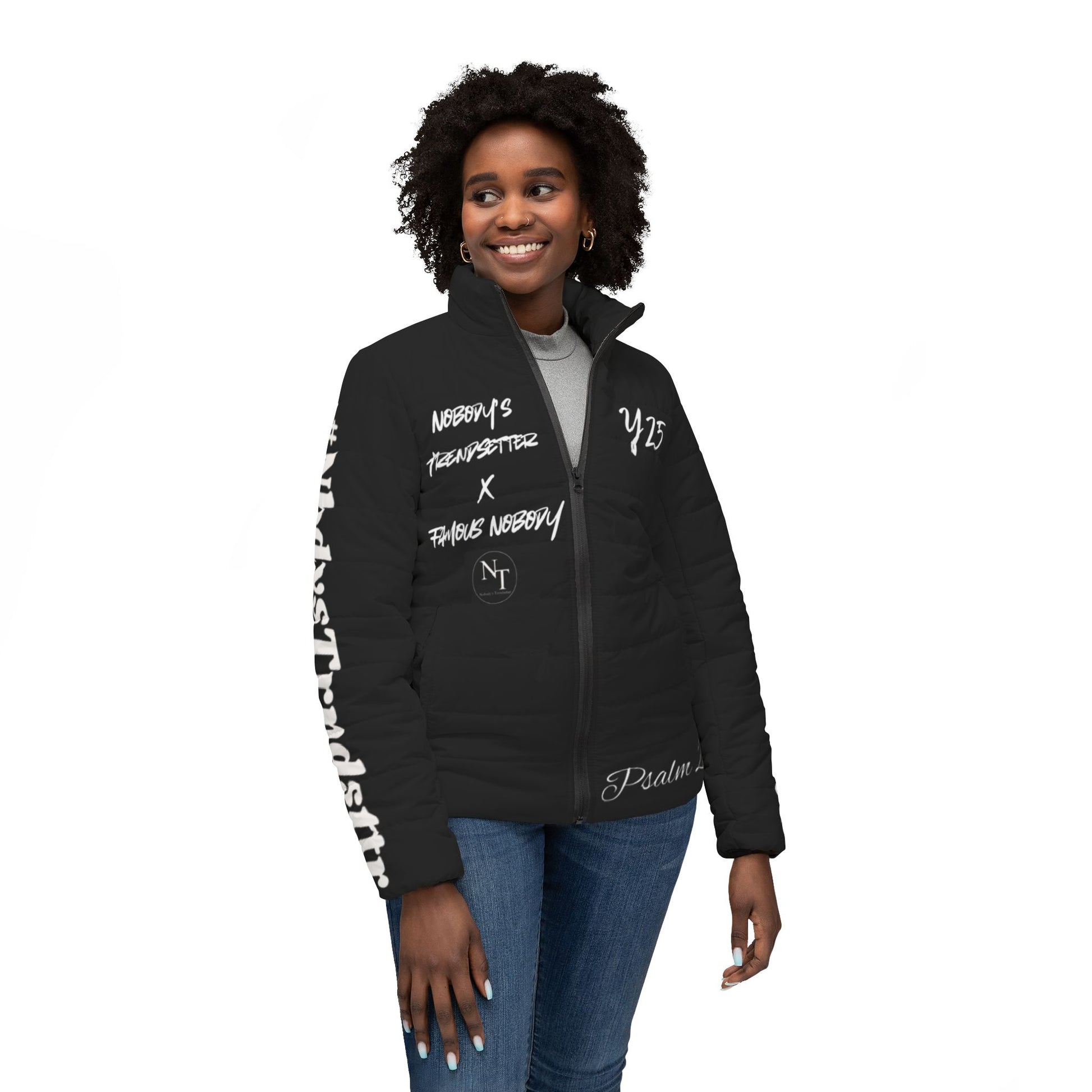 Women's First Edition Winter Collection Nobody's Trendsetter x Famous Nobody - Black Graphic Puffer Jacket